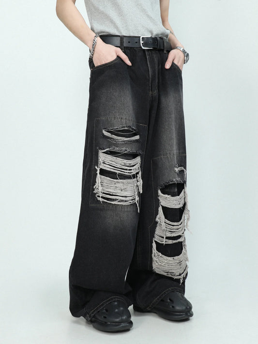 FlyShtFitsUK Denim Pants for Men's Design Sense Small and Loose Wide Leg Straight Leg Pants hiphop