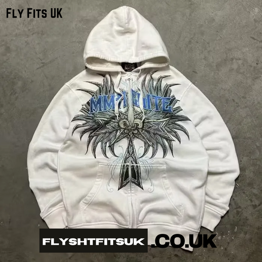 2023 Vintage Classic Letter Print Pattern Women Zip Up White Hoodeds Gothic Harajuku Casual Fashion Loose Sweatshirts New