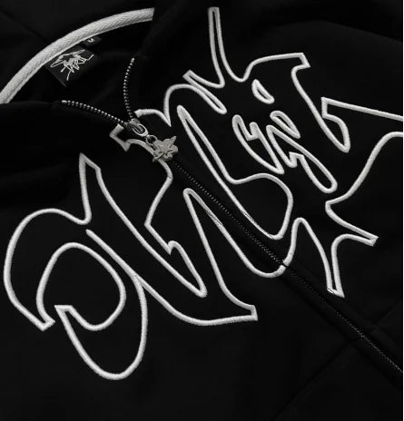 FlyShtFitsUk Vintage Embroidery Printed Letter Hoodie