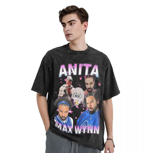 Anita Max Wynn Love Washed T Shirt Streetwear Hip Hop Cool T-Shirt Tees Tops Men Women Short Sleeve Harajuku Printed
