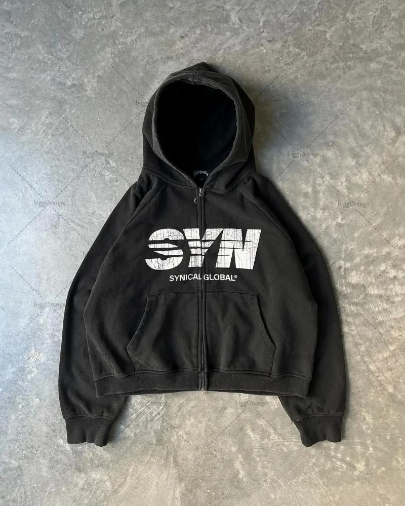 Y2k American Retro Zipper Sweatshirt Women with Letter Print High Street Oversized Hoodie Men Retro Harajuku Trendy Clothing