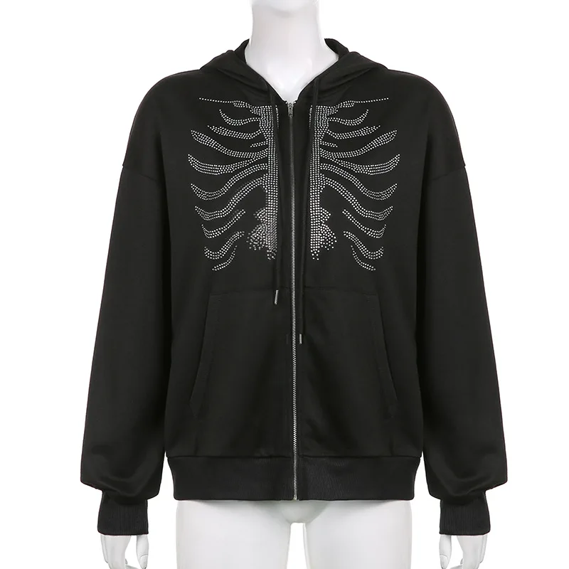 Y2K Gothic Butterfly Print Oversize Zip Up Hoodies 2022 Winter New Grunge Long Sleeve Sweatshirt Casual Hooded Jacket Streetwear